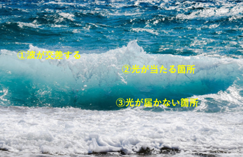 ①波の交差、②光が当たる箇所、③光が当たらない箇所・届かない箇所の3点です。