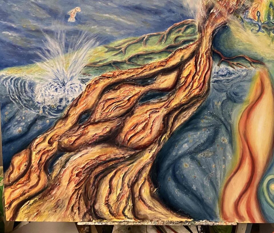 僕は半具象画(写実的と抽象的を混ぜたジャンル)が多いのですがテーマや表す為に必要であればこの技法を用いります。