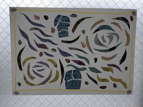簡単に言えば自宅にあるような紙類を切り、画用紙などやキャンバスなどの支持体上にぺたぺたと張り付けた表現方法ですね。