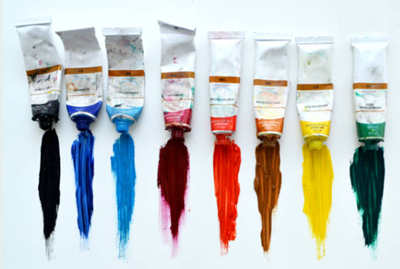絵具による色の作り方として、青(シアン) / 赤(マゼンタ) / 黄色(イエロー)、白と黒の5色があればほぼ他の色を再現する事が出来ますが色の組み合わせを理解する必要があるので最初は、10色程、揃えておくと良いですね。