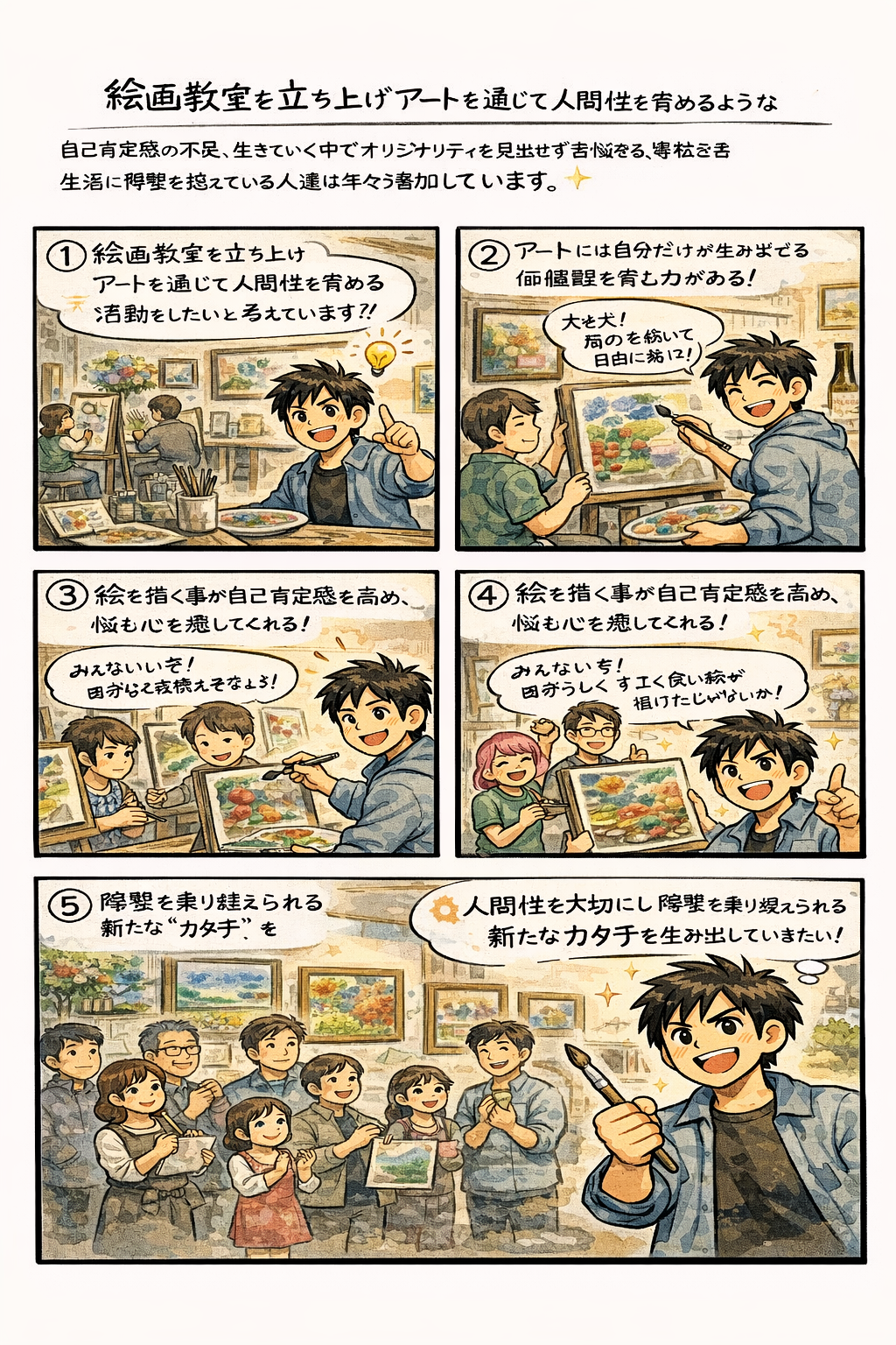 絵の描き方やPRの方法という技術だけでなく人間性(自律性、自己肯定感など)を育む