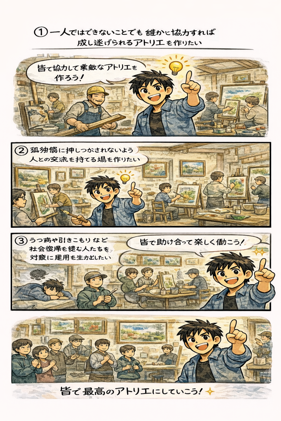 うつ病や引き籠りなど事情を抱える人を中心に社会へ再スタート切れるような雇用を生み出して